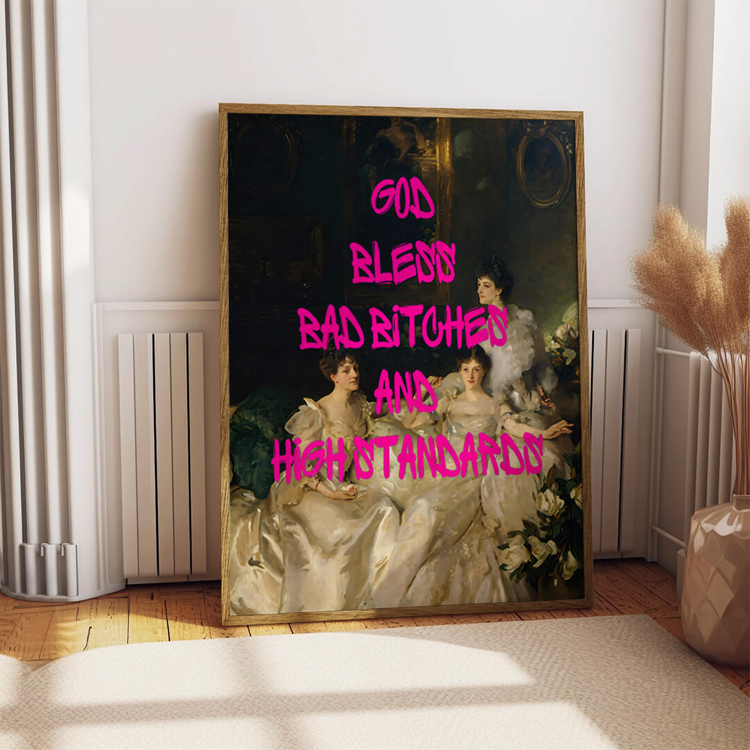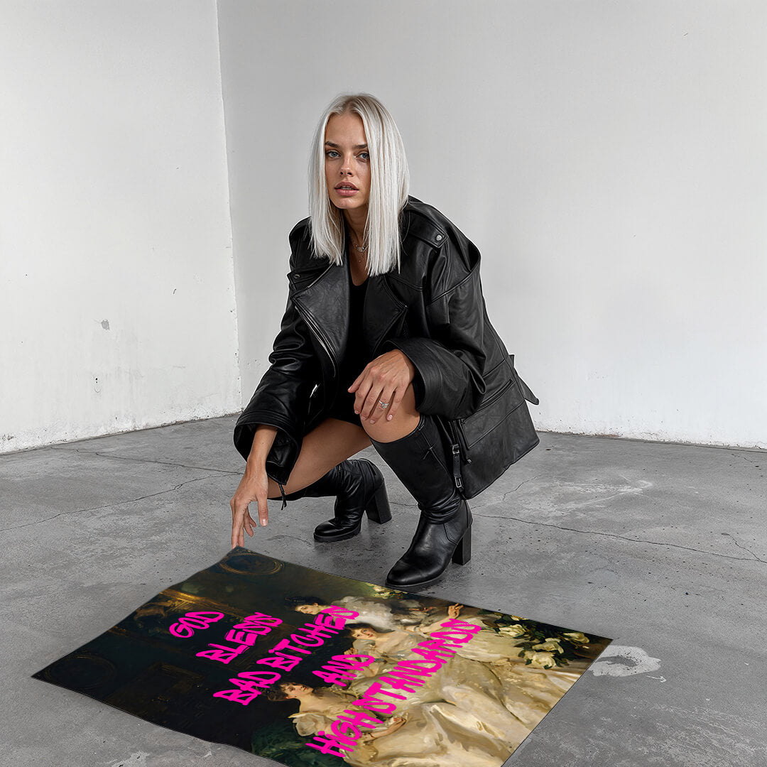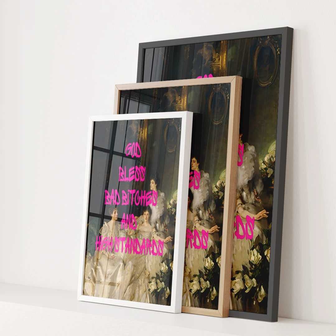 Es gibt Regeln, und es gibt die Frauen, die sie schreiben. Wer sich mit weniger zufriedengibt, kann gleich weiterziehen. Dieses Motiv vereint königlichen Chic mit knallharter Attitude. Kein Platz für Mittelmaß – weder im Leben noch an der Wand.