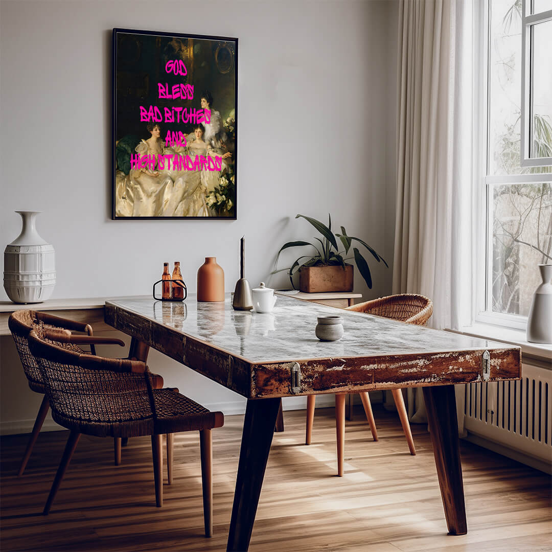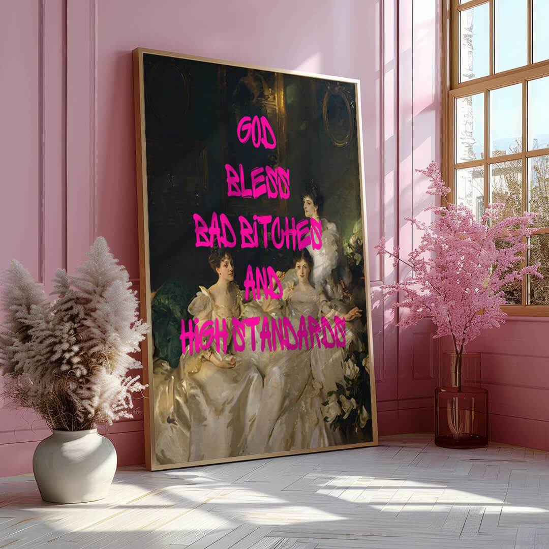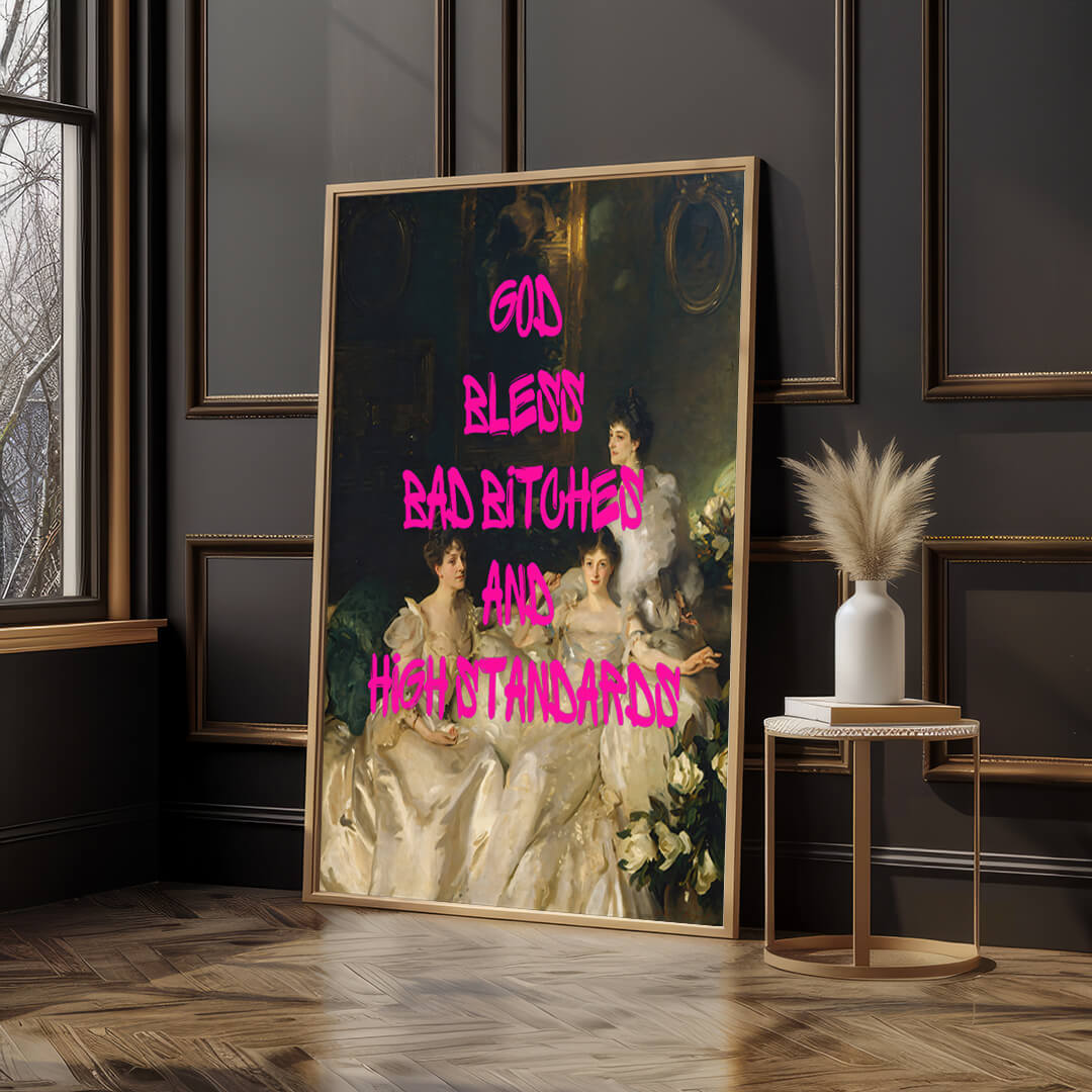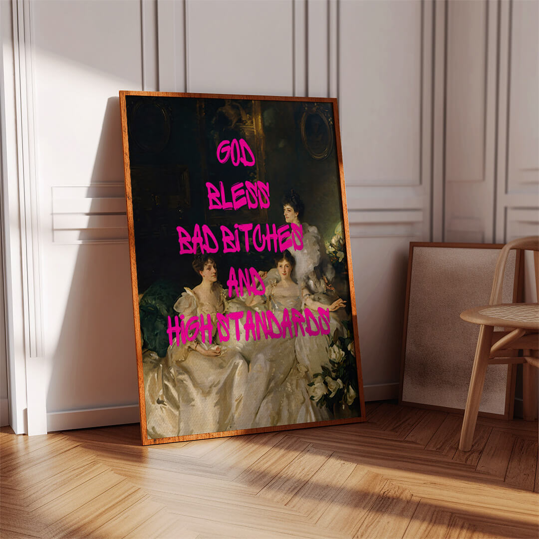 Es gibt Regeln, und es gibt die Frauen, die sie schreiben. Wer sich mit weniger zufriedengibt, kann gleich weiterziehen. Dieses Motiv vereint königlichen Chic mit knallharter Attitude. Kein Platz für Mittelmaß – weder im Leben noch an der Wand.