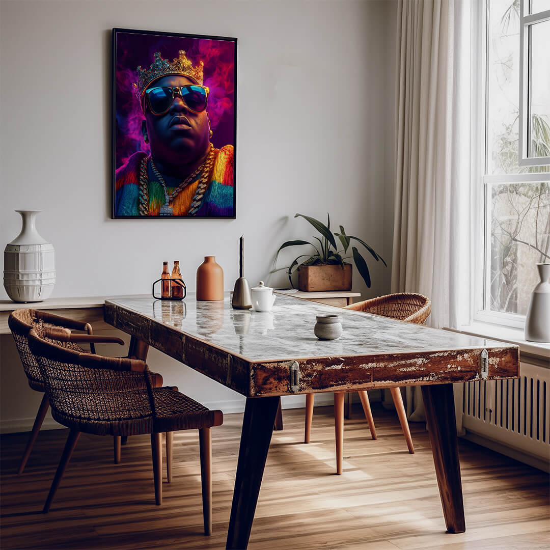 Biggies Einfluss auf die Musik und Kultur wird hier eindrucksvoll dargestellt und ist ein Muss für Fans, die sein Erbe feiern möchten. Perfekt geeignet für moderne Wohnräume, Musikstudios und kreative Räume, die den Spirit des Hip-Hop und den Charakter einer Legende widerspiegeln wollen.