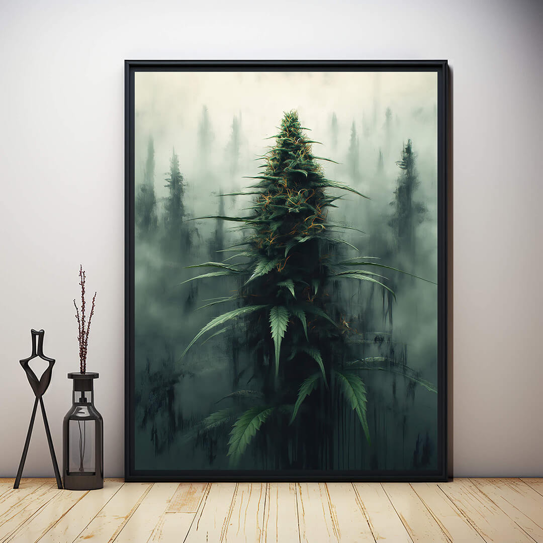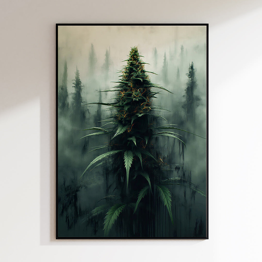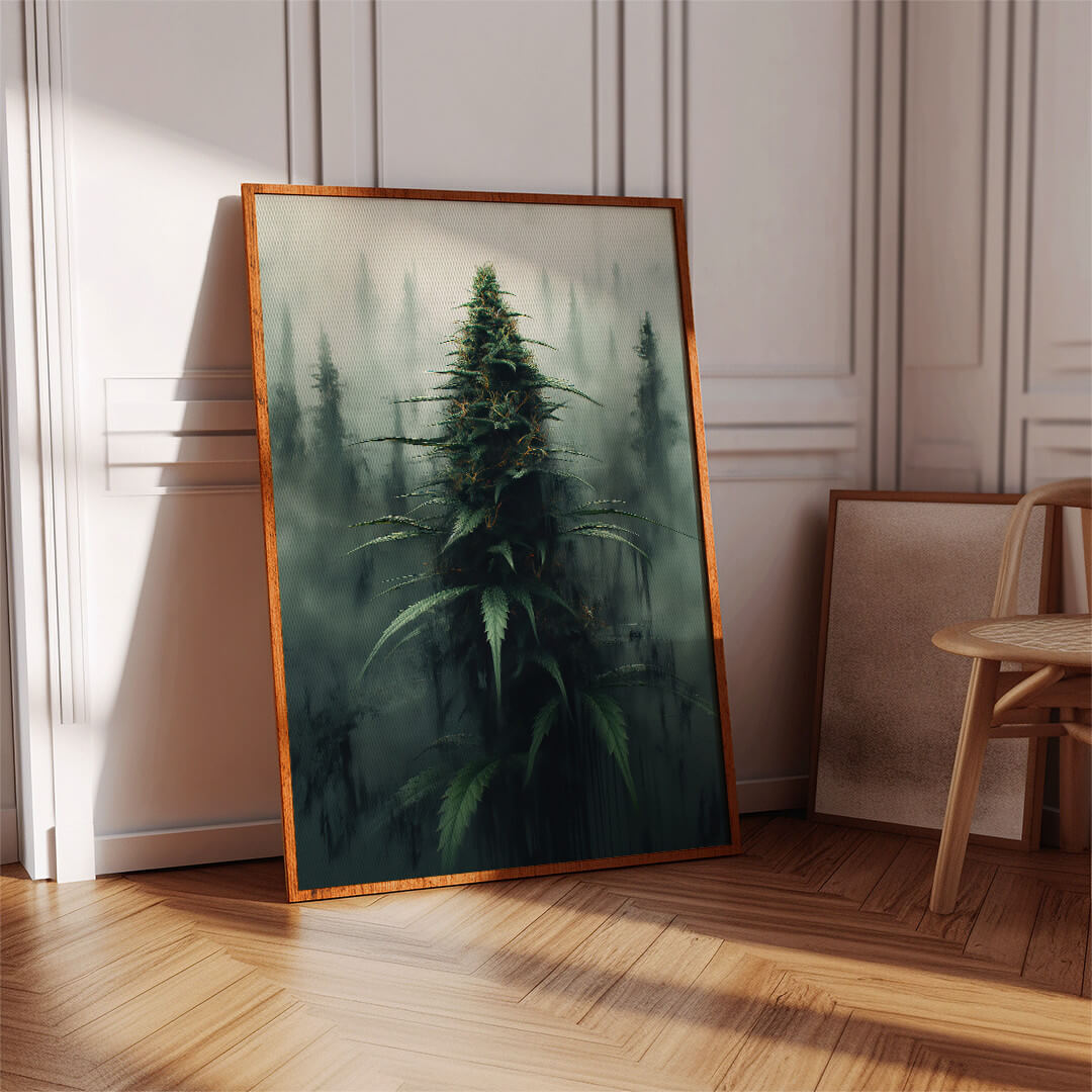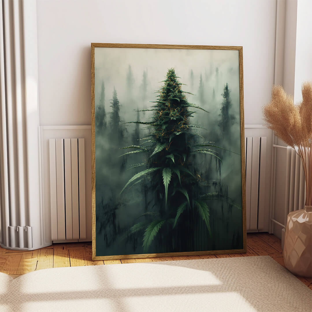 Entdecke die neblige Sphäre – ein Ort, an dem die Grenzen der Wirklichkeit sich verflüchtigen und die Natur in ihrer mystischen Pracht erblüht. Lass Dich von der majestätischen Cannabis-Blüte inmitten eines sanften Nebelmeeres verzaubern, wo jeder Blick ein Abenteuer für den Geist darstellt.