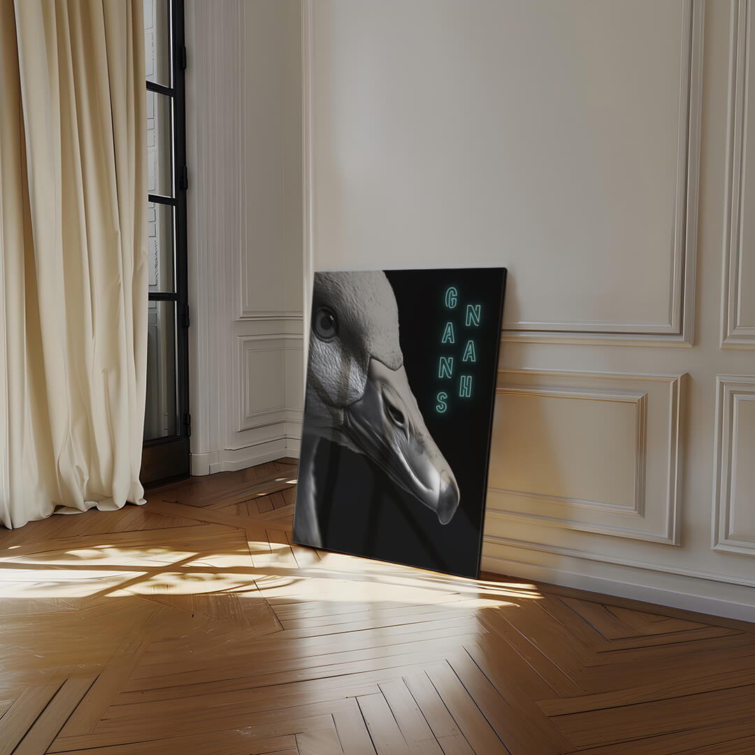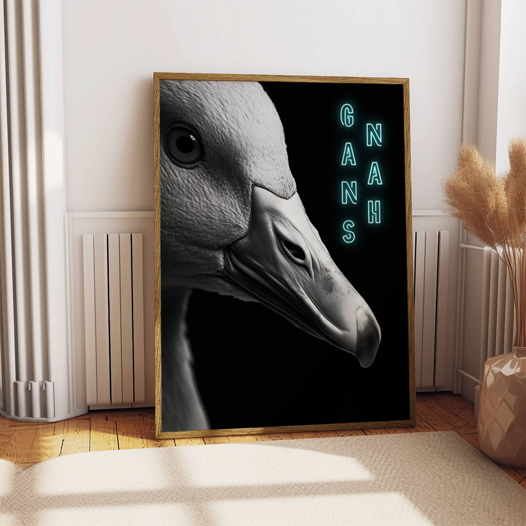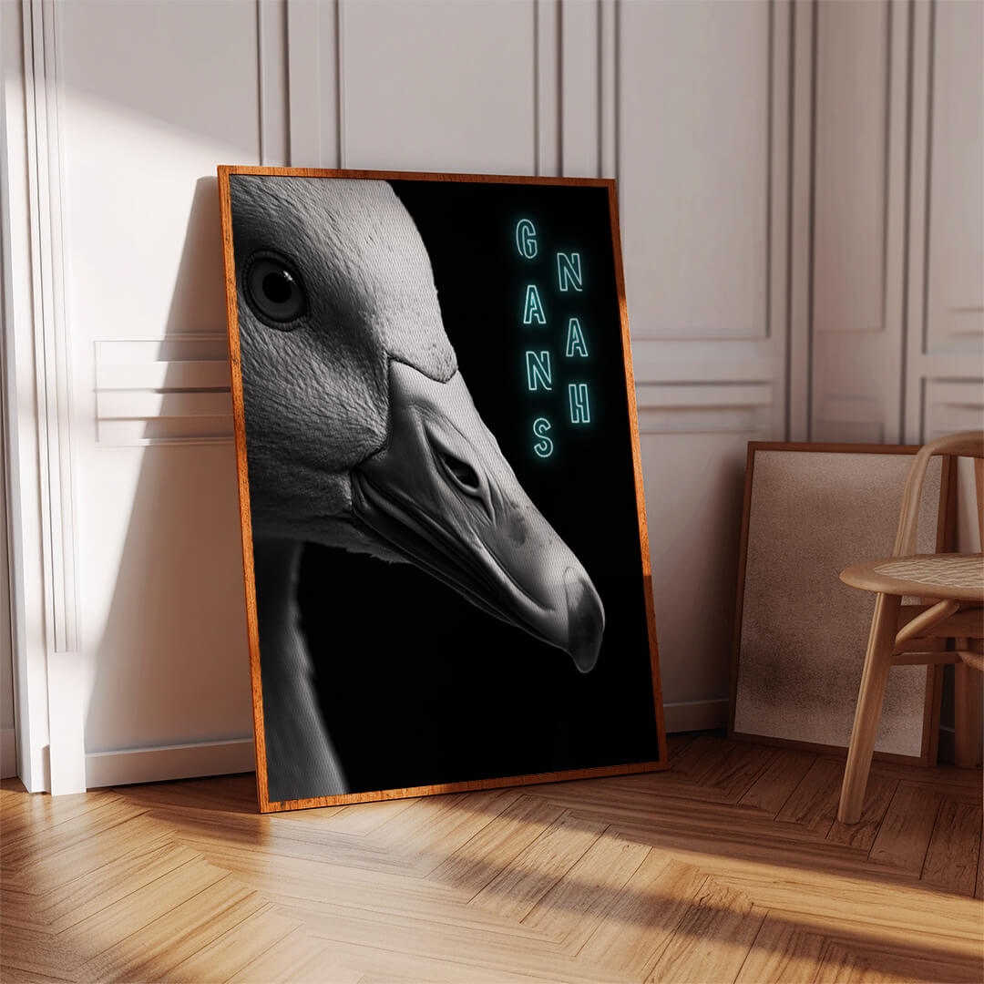 Augenkontakt, der sitzt. "Gans Nah" holt die Gans direkt ins Rampenlicht und lässt Dich jedes Detail hautnah erleben. Dieses Motiv schafft eine Nähe und bringt die Eleganz und Präsenz des Tieres eindrucksvoll zur Geltung.