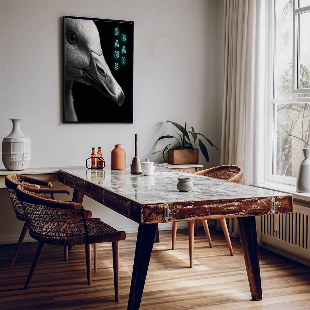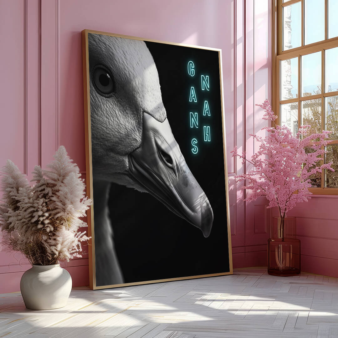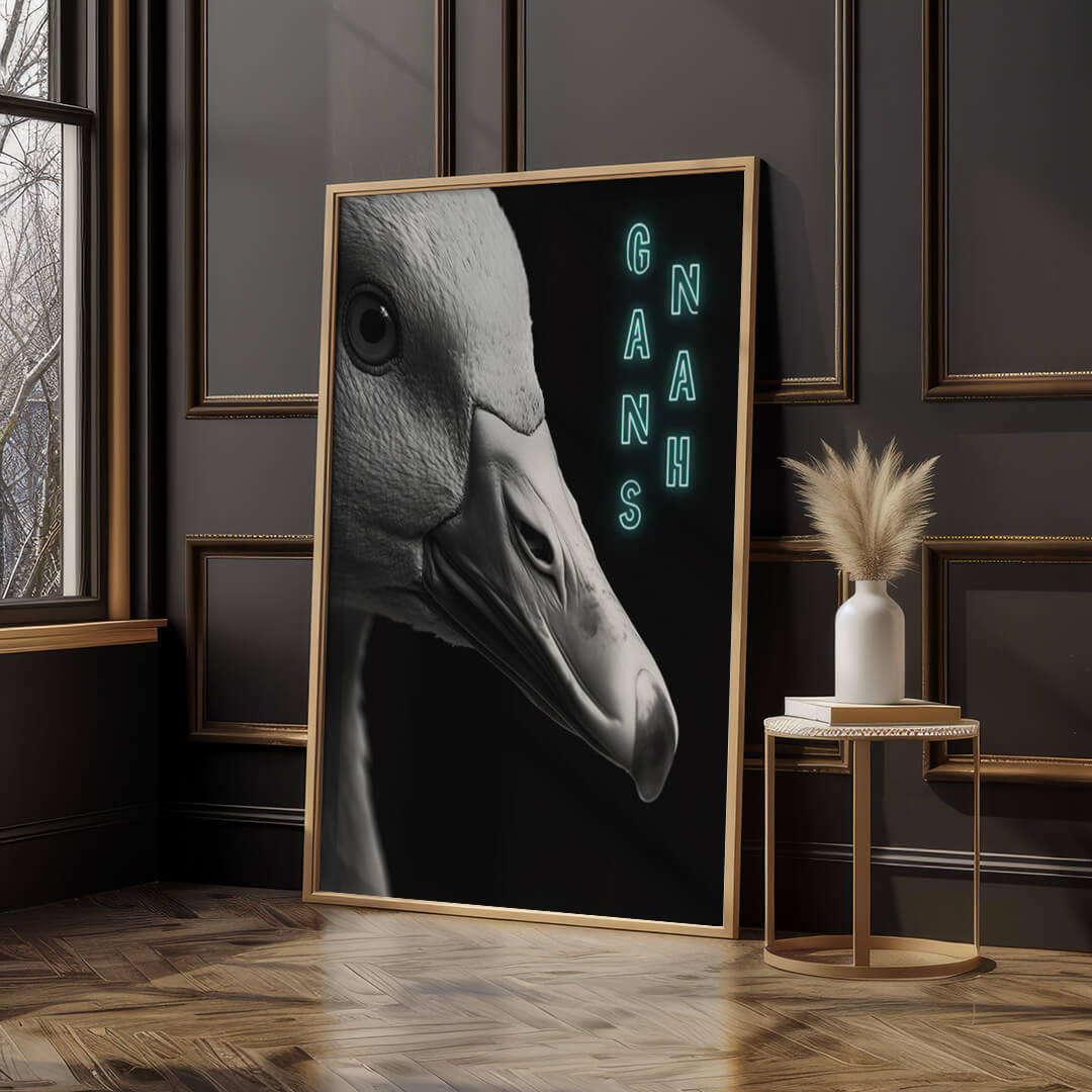 Augenkontakt, der sitzt. "Gans Nah" holt die Gans direkt ins Rampenlicht und lässt Dich jedes Detail hautnah erleben. Dieses Motiv schafft eine Nähe und bringt die Eleganz und Präsenz des Tieres eindrucksvoll zur Geltung.