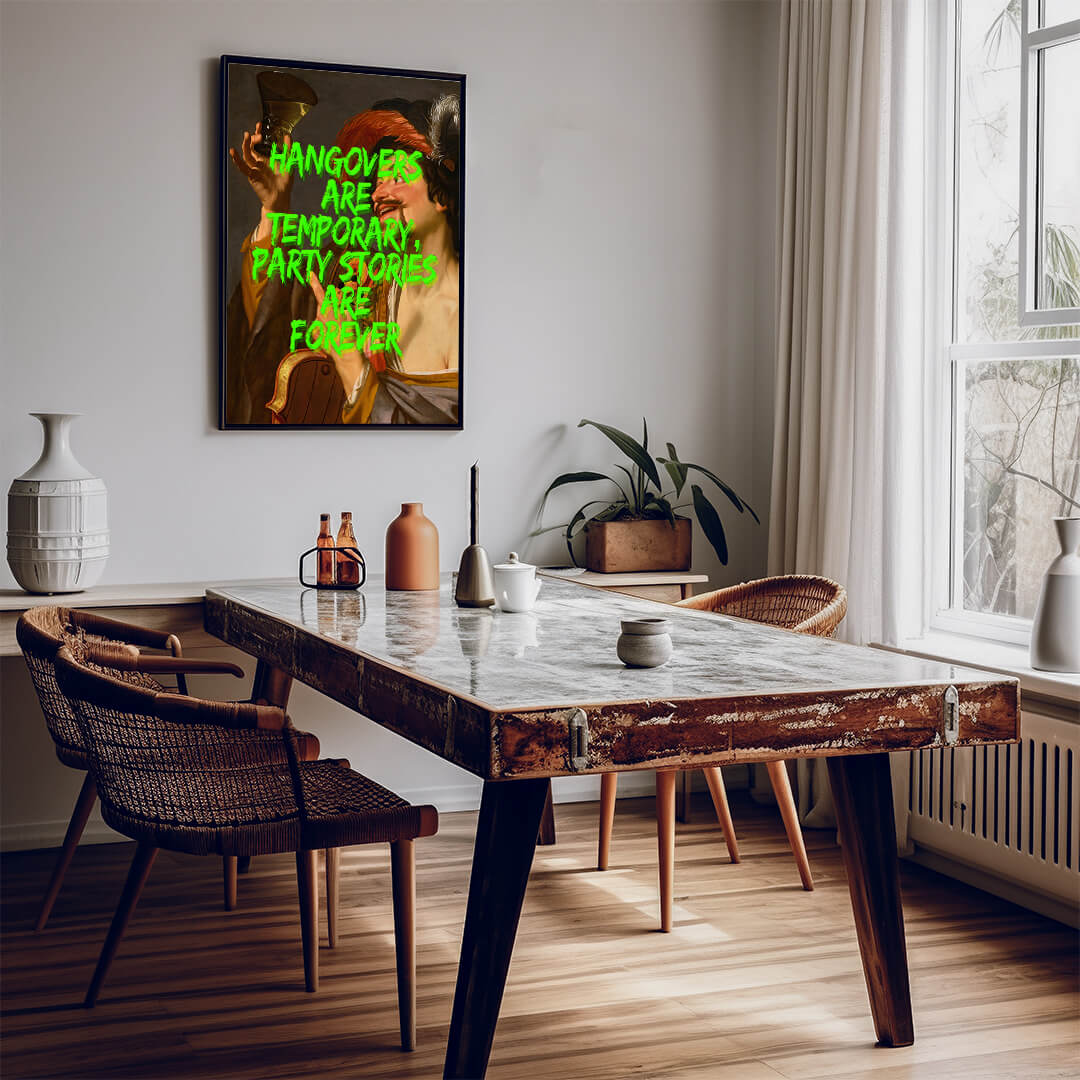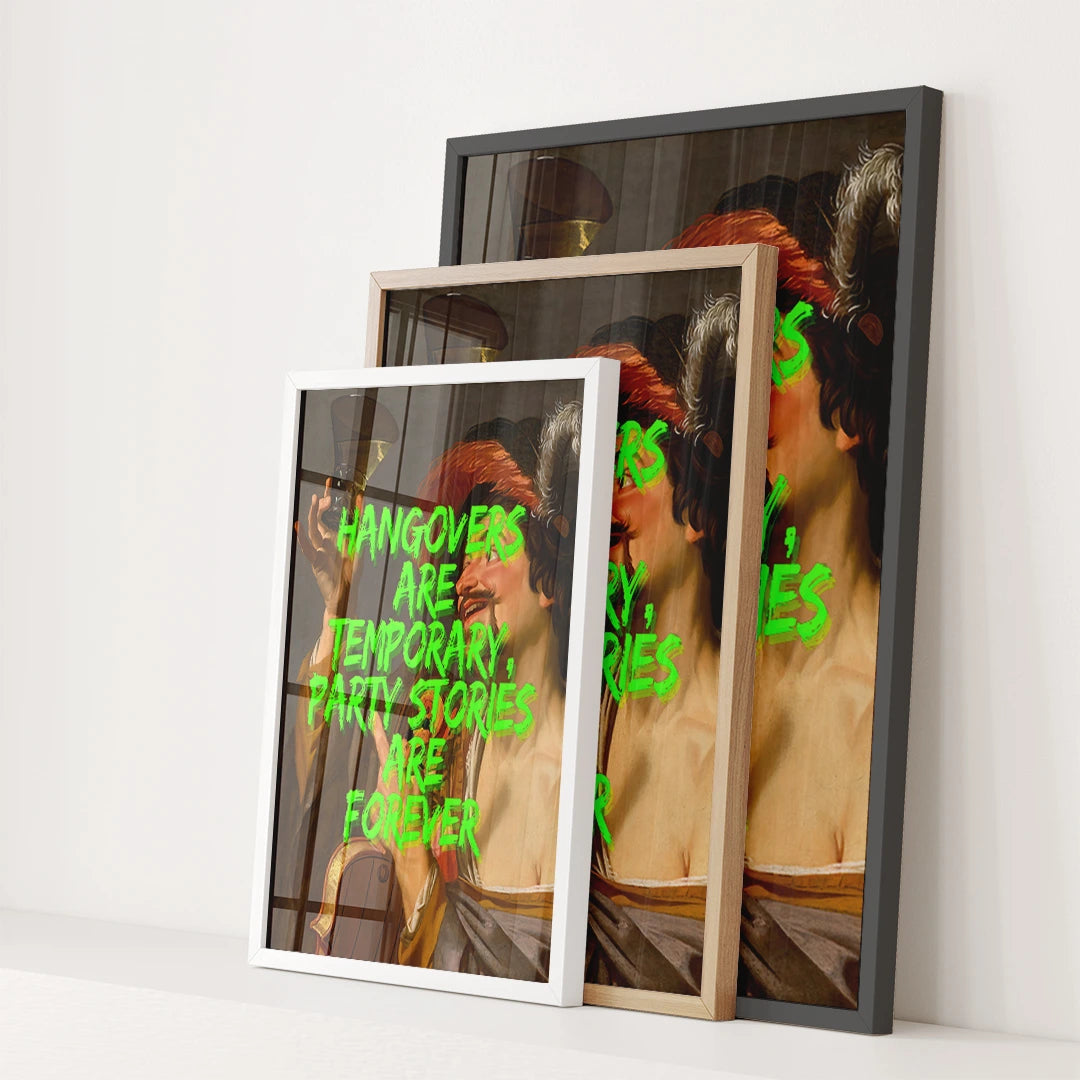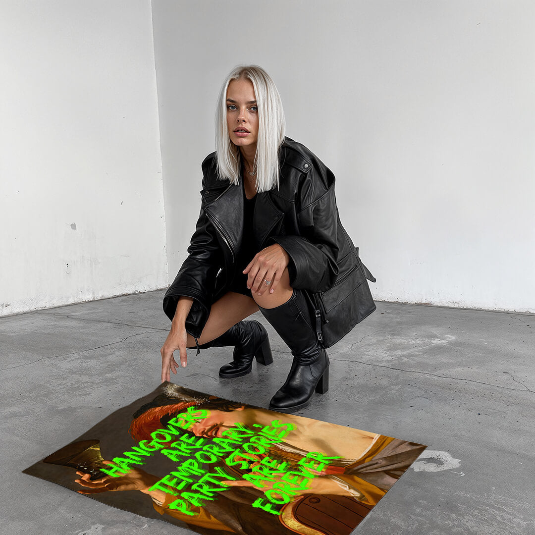 Ein Kater vergeht, aber epische Nächte bleiben für die Ewigkeit. Dieses Poster ist eine Hommage an spontane Eskalationen, an wilde Partys und an all die Erinnerungen, die vielleicht etwas verschwommen sind – aber dafür legendär.