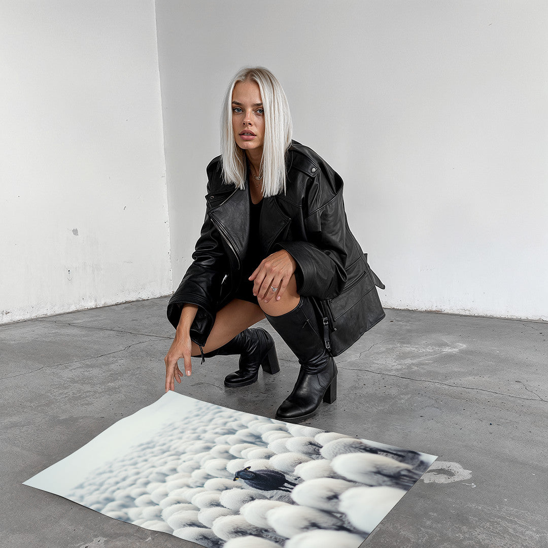 Dein Motiv wird präzise auf die Rückseite einer 4 mm starken Acrylglasplatte gedruckt. Hinterlegt mit einer Kombination aus weißer und schwarzer Folie, entsteht ein faszinierender Tiefeneffekt.